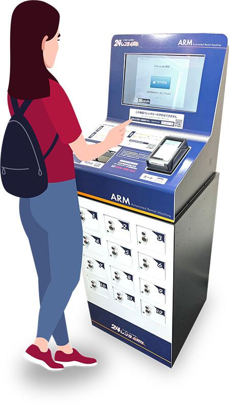 24レンタカーは、「24時間予約を適正化する特許取得システム」と「セルフで出発・返却手続きを可能にする無人貸渡機」を組み合わせることで、24時間いつでもマイカー感覚で利用できる無人レンタカーサービスを実現しました。